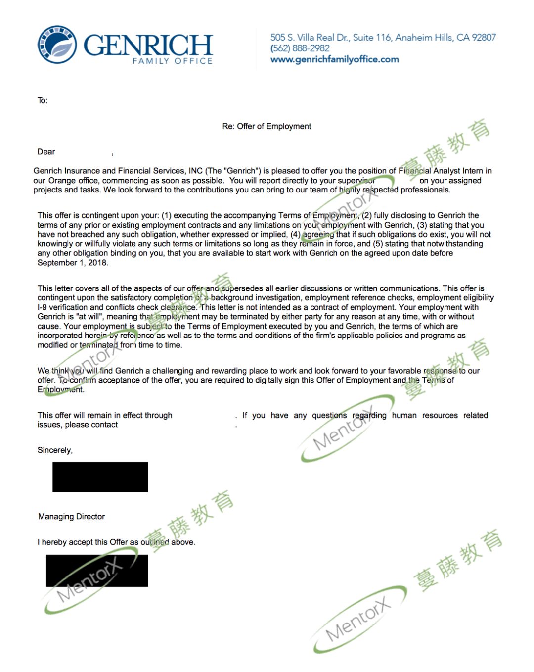 从这两方面看,学生需要专业和软技能双管齐下,进行全面提升。在导师的帮助下,学生进行了多次模拟面试(Mock Interview),对于面试流程和面试该准备的内容都有了进一步了解。学生课下也非常积极的进行准备,最终不仅拿到了两个面试机会,也得到了面试官的青睐,成功拿下中关村发展集团和Genrich的两个Offer。