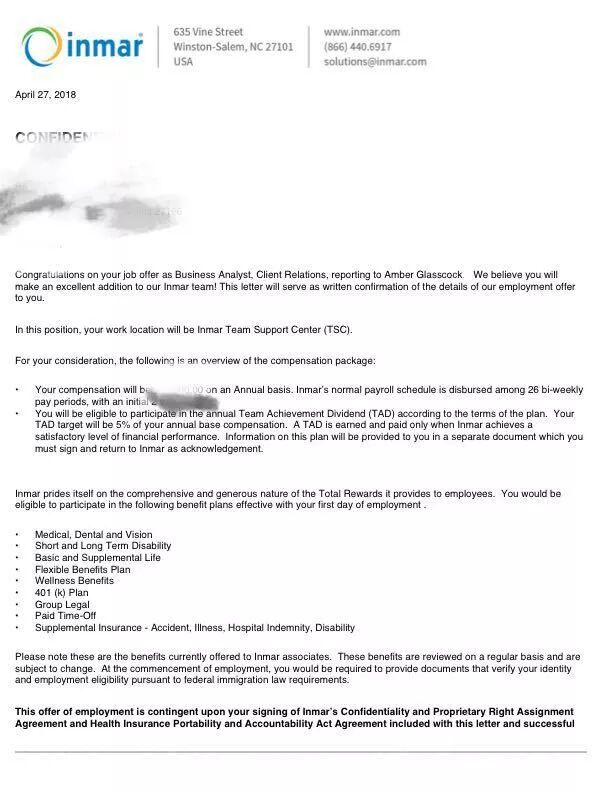 Offer:拿到过麦肯锡,wayfair,inmar等面试,最终学生得到了inmar的Offer。