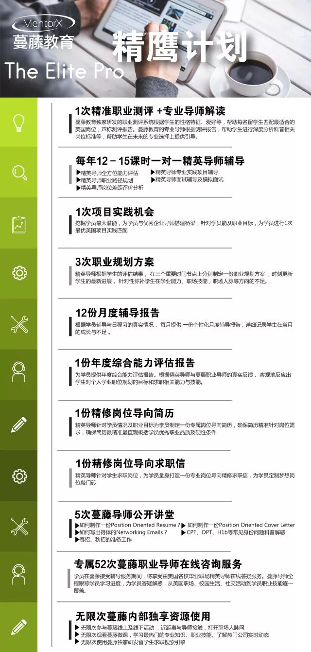 学生即将面临毕业,所选择的项目是课程内容最丰富的"精鹰计划",每个月都可以跟导师及时交流,获取自己过去一个月学习、做项目的反馈,及时和导师协调并商讨接下来的学习重点。总时长为一年的课程才进行了四分之一,便收获了对自己未来职业发展大有益处的Summer Intern Offer。通过这段时间的辅导,学生对于美国BA行业有了更深的了解和体会,也熟练掌握了以后职场发展必不可少的技能,整体水平都所有提高。