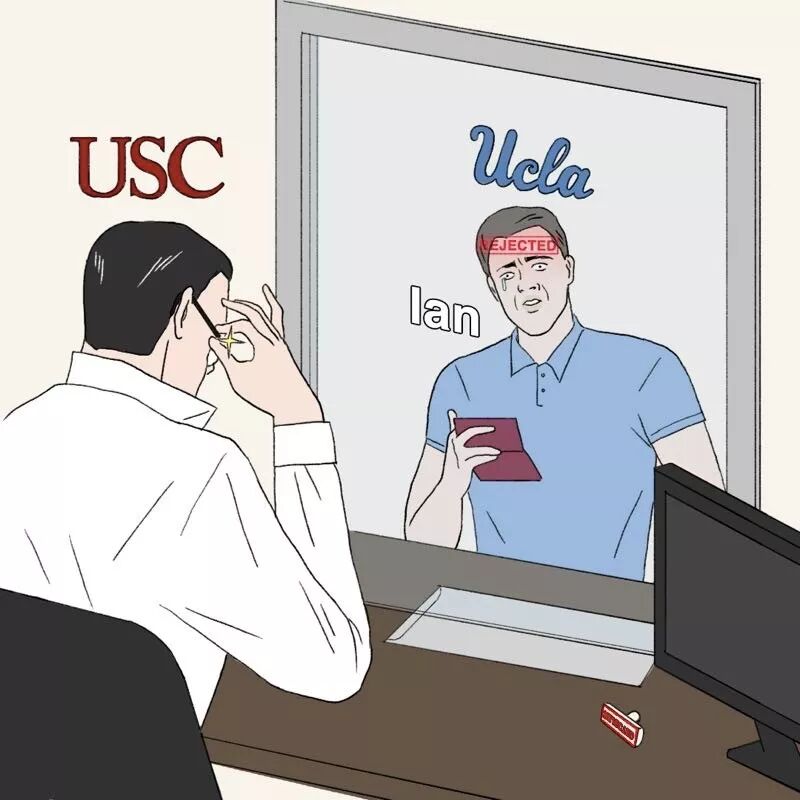 Ian 最终没能成行,因为他被一位南加大*毕业的签证官拒签了。