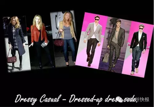 这种是介于正式和非正式之间的一种着装要求。着装可较为自由,但是并不是随便的休闲装。