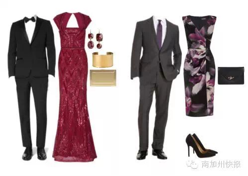 女士可以是晚礼服、不拖地的四分之三长礼服或者是考究的晚宴两件套(dressy separates),配备参考Formal。