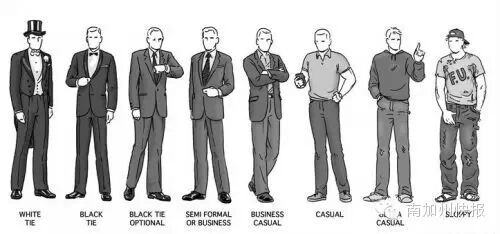 美国的着装标准(Dress Code)基本上可以分为8类。