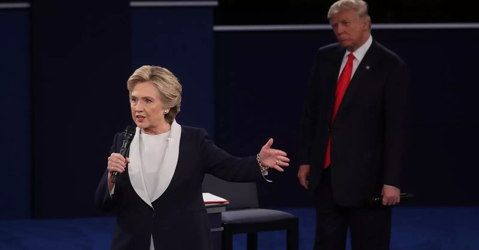 第二场总统辩论一开场就显示出了空前激烈的气氛!开场两人连手都没握,仅以一个“hello”互相问候,直接开撕。