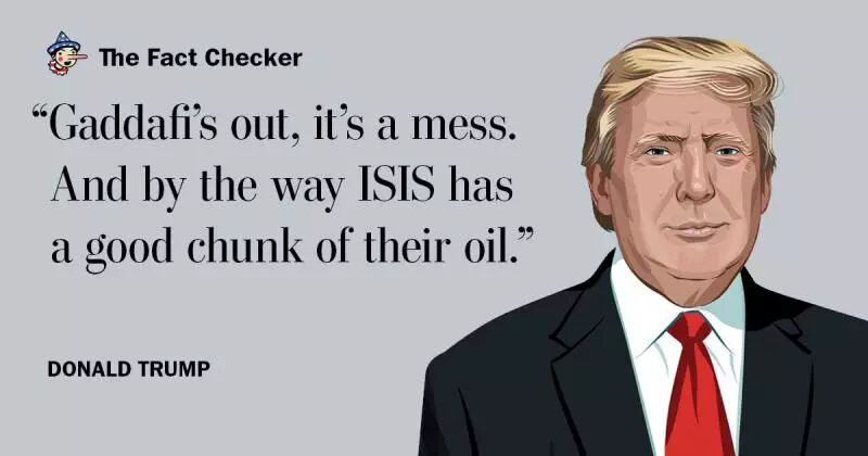 《华盛顿邮报》的事实核查发现,川普对伊斯兰国占据利比亚油田的表述是错误的。虽然ISIS试图介入到比利亚的权力真空中去,但是没有任何证据显示ISIS占有油田。Wrong!