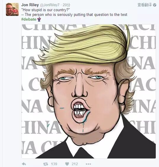 紧接着,川普又攻击希拉里“邮件门”说:如果我赢得大选,我会要求特别检察官重新调查,并表示“you will be in jail"(你会在监狱里) "。“You will be in jail”也成功成为本次辩论赛最佳金句!