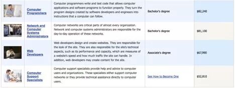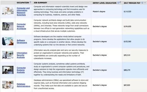 Computer Network Architects和留学生热门岗位Software Developers的薪资紧随其后,也达到了10万+,对于学历的硬要求也相应低了一些,本科学位就可以担任。