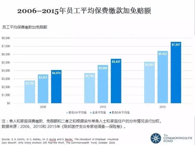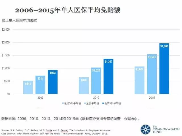 突破不了免赔额(起付线),医疗费用就得自费负担,但是,尴尬的是,在美国,自2010年以来,尽管免赔额平均年增长率与ACA颁布前的5年相比有所放缓,但实际数字仍然很高。2010至2015年间,单人医保计划的免赔额年增长率为8.5%,而2006年至2010年间为9.5%。
