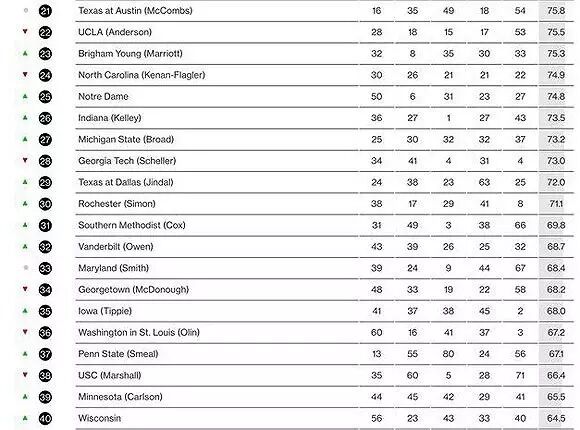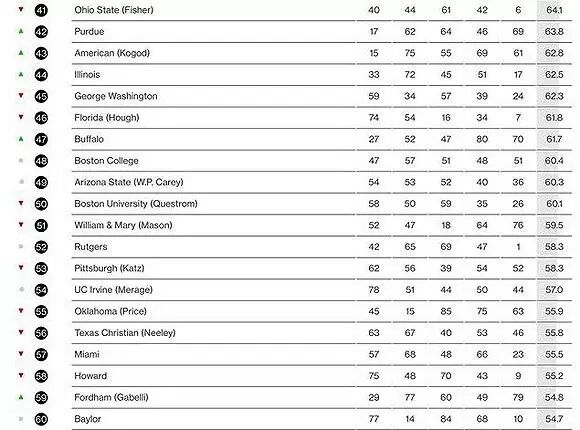 MBA学位是个烧钱大坑。据《彭博商业周刊》,虽然MBA毕业后就业率平均可达89%,但攻读MBA学位平均要花掉约25.8万美元,一个新入学的MBA学员大约身负5.3万美元债务。而且有些高额学费的名校MBA尽管评价不错,但实际就业率并不高。 因此在修读之前,你最好考虑清楚这种教育对自己而言是不是值得,以及根据自己的需求选择一个比较合适的项目。美国MBA教育到底哪家强? 1 《彭博商业周刊》调查了超过1000名猎头和美国87所商学院的9000名应届毕业生及15万校友,评选出了美国MBA项目排行榜,其中哈佛商学院保持了2015年的榜首优势,以综合排名100分的成绩稳居第一,超过第二名斯坦福近10分。 相比2015年,斯坦福大学商学院和杜克大学福库商学院都上升5名,分别排第二与第三,而芝加哥大学布斯商学院从第二下滑到第四,宾大沃顿商学院和麻省理工大学斯隆商学院从并列第四分别下滑至第五和第七,哥伦比亚大学商学院更糟糕,从第六掉落出前十。进步明显的莱斯大学琼斯商学院上升11位,这次排名全美第八,而2016年与沃顿并列第五的达特茅斯塔特商学院,相比2015年也上升了9位。 2 在众多商学院排行榜里,始于1988年的《彭博商业周刊》商学院排行榜一直是比较主流靠谱的。评选中具体评分标准占比是雇主评价(35%)、校友评价(30%)、学生评价(15%)、毕业后3个月内就业率(10%)以及起薪(10%)。 雇主评价主要针对MBA毕业生在实际岗位上执行任务的表现;校友反馈主要有关毕业后的工作满意度和收入回报等;应届毕业生这项考量的是学生对MBA项目是否对其未来就业有所帮助的认可度,主要聚焦于探讨校园文化及资源,比如职业服务、教师和管理情况。 3 虽然雇主们将哈佛列为MBA毕业生工作准备水平最高的学校,但要论学成后最会赚钱的还是斯坦福商学院毕业生,哈佛学生薪水情况次之。至于学生口碑最好的学校,则要属综合排名第26的印第安纳大学凯利商学院。 有趣的是,无论是哈佛还是斯坦福,在毕业生就业方面表现都远远比不上其总体声誉。哈佛MBA毕业生就业率排在全美第35,而斯坦福只排57名。反而是综合排名52的罗格斯大学商学院,就业率高达全美第一,其次是爱荷华大学的Tippie商学院及路易斯华盛顿大学奥林商学院。 附:美国MBA项目排行榜Top 60 图片来源:《彭博商业周刊》 转自曾烨轩(界面新闻)