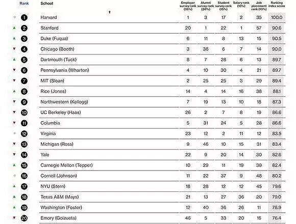 美国MBA哪家强?哈佛、斯坦福就业率居然三十名开外