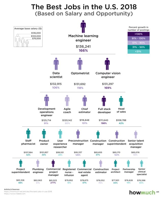 Machine learning engineer(机器学习工程师): $136,241,增长166%