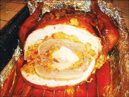 Thanks to the culinary genius of Louisiana (or Wyoming or South Carolina — each region has staked its claim), more and more Americans are forsaking Butterballs for Turduckens. A what? Picture this: a turkey stuffed with a duck stuffed with a chicken. It's like a Russian nesting doll only with poultry. One store in Louisiania claims to ship more than 5,000 turduckens the week before the feast. Though this may seem like sacrilege to some, the original Thanksgiving meal featured fish, oysters, eel and lobster as well as wild turkey. Other modern pilgrims settle for a tofu version ("tofurkey") or the wildly dangerous "deep-fried turkey."