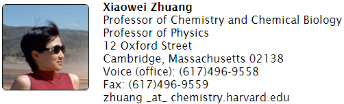 XiaoweiZhuang,是个华人女教授,还是正教授,而且是化学及化学生物和物理学双科教授,看照片还很年轻!要知道在美国科学界,女教授本来就稀缺,何况还是能在哈佛拥有自己实验室的华人女教授,她到底得有多牛啊?