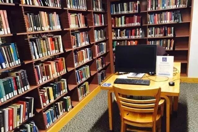 书架旁边的写字台,供学生学习和查书