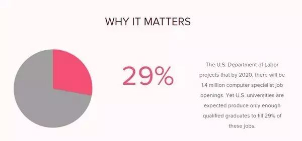 还是来自U.S. Department of Labor的数据,到2020年,CS领域有140,000,000的人才需求,而美国大学的各种毕业生只能填补29%的人才空缺。