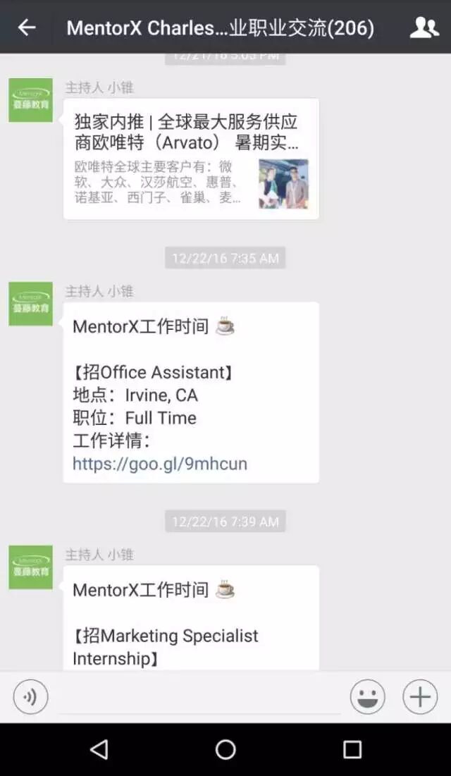 “秋招”已成为9月美国各大学校的热搜词。童鞋们也被“投行”“四大”“咨询”等词汇搞得头晕目眩。甚至上个月爆出“四大今年已经不招收留学生了?!” 不卖关子,我们为你请到了四大Senior Manager,来解答你去四大工作的种种问题,直接告诉你怎么拿到四大的工作! 四大第1问: 四大喜欢什么样的学生? 成绩好?GPA要多高? 是否获得奖学金?英语要超级好? 需要有丰富的社团经历? CPA一定要考吗? 除了硬性条件之外四大还希望学生具备哪些软性条件? 各种问题,加入我们1小时线上分享,让来自EY的大牛导师来为你解答所有疑问! 四大第2问: 四大都有什么样的工作? 大家都知道四大是美国最大的会计事务所,简单的说就是跟会计相关的工作,但是这里面的各个部门又有很不同的分工: 审计(audit):主要负责给各类企业查账,可以接触到不同行业的企业。 税务(tax):相对审计就显得轻松点(可能有一部分税务的同学们不愿承认),税务工作不会像审计在旺季的时候那样累成狗,而且出差少加班频次低,工作比较稳定。 财务咨询(financial advisory):主要从事企业并购重组(A公司买下B公司)中的财务尽职调查,运营尽职调查。 会计,审计,咨询傻傻分不清?这三者之间对应聘者又有什么不同的要求?除了上面的三个部门,还有哪些部门是留学生可以申请的呢? 下周五EY的大牛导师将为你解析四大招聘的流程和要求! 四大第3问: 进入四大后会有怎样的升职通道呢? 这个问题还是很多同学都关注的,在世界500强企业工作,究竟可以给我带来怎样的职业发展优势呢? a。 Associate第1年 初入职场心态比专业更重要,放低姿态虚心求教是入门的关键。 b Associate第2年 在四大你可能只需花1年时间就适应或被迫适应高压生活,随着入职年龄增加,你会慢慢开始涉及复杂的问题。 c Senior Associate 3年 做到Senior Associate最大的改变就是在思考上,你不再是蒙头做事的人,你需要考虑如何调整团队来提升做事效率 d Manager 3年 进入Manager正式属于中层干部,考验的不仅仅专业程度、管理能力、还有综合实力、人脉关系、行业口碑、人品等。 e Senior Manager& Partner 和Manager比,工作任务上差别不大,从职位上来说,更靠近合伙人,从公司业务角度来说,变得越来越重要,参与项目和维护客户也随之变的更重要。 下面跟小编一起看看四大之一的安永近几年的招聘趋势(下图来自LinkedIn): 两个字:稳定! 留学生想跻身进入28%的entry工作行列,你要做到哪些?下周讲座与你分享! 还有很多你想知道的话题: ✔︎学会计只能去四大吗? ✔︎四大的招聘要求是什么?EY与其他三大有什么不同? ✔︎哪些学校是四大的Target school?导师对同学们有什么准备秋招的建议? ✔︎假如学校不是Target School, 学生应该通过什么方式去赢得面试机会? ✔︎学生应该在哪个学年开始做招聘准备工作? MentorX导师手把手带你闯秋招 1小时四大招聘 & 秋招面试分享 演讲嘉宾 Zhen W. Senior Manager Business Tax Service Ernst & Young, Los Angeles 安永高级经理。拥有逾十年税务工作经验,为全球多国跨国公司提供税务及商务咨询服务。美国注册会计师。对四大招聘经验丰富。 讲座须知 讲座时间:9月8日(下周五) 3-4pm 美国西部时间 6-7pm 美国东部时间 6-7am 中国北京时间 讲座方式:微信群语音 报名入群方式 【报名方式】 扫描下方二维码 加小蔓老师为好友 留言回复“四大秋招” + 学校名字 即可入群 对了,告诉你一件事 你知道吗,你的学校已经有秋招群了 MentorX校园专属秋招群现已开启 蔓藤为在美所有留学生 建立属于每一个人自己的秋招群 里面全是你同校的同学 针对你自己学校的秋招 为你来一次真正有帮助的 “私人辅导” 在秋招群里 你会知道 你的学校有哪些公司会去秋招? 你可以锁定最有机会的岗位 掌握所有秋招公司信息 学会如何与公司套瓷 准备一份Position Orientated Resume 入群并转发本文章即可免费获得: 一份简历!! 简历!! 而且不光是简历哦... 还有针对你的的简历报告 从头到尾帮你提升到完美无瑕 展示一下已经收到简历的同学的报告吧~ 不光是入群哦 MentorX上知天文下知地理的老师 还会为你现场解答求职疑问 传授面试经验 欢迎招聘会当日 到我们的展台 跟我们面基~~ 适合人群 所有留学生! 想了解和参与秋招? 想找实习和全职? 只要你是校友就可以参加! 入群福利 1、内推工作每日分享: 除了校招,你同样也不想错过没有来到你学校的其他公司的工作。每周一到五早上10点(西部时间)我们会在群里发送推荐岗位。每周群内不定期会发送MentorX合作企业职位,通过内推渠道直接送到你心仪公司的HR和manager手中。让你的秋招效率大大提升! 2、精英导师专题讲座: 秋招倒计时一个月,我们将在群里举办精英导师的专业专题讲座。想与全球500强职场人士、HR甚至高管近距离接触? 9月开始,我们为大家带来了: 四大招聘专题讲座 FLAG公司面试经验分享 秋招Networking技能分享 还有更多技能面试和职场软实力tips 导师都来到你们学校了 你还不快快上车! 3、蔓藤微课全免观看: ✔︎想知道如何为你的职位量身定制Cover Letter? ✔︎Management Consulting需要什么样的人才? ✔︎矿工、码工、金工有什么区分? 群内将在每周一、三、五下午6点分享5分钟小课程,帮你轻松掌握秋招知识和技能。 4、使用职场引擎找到最适合的工作: 蔓藤职场引擎是首个为留学生量身设计的职场工作搜索引擎。搜