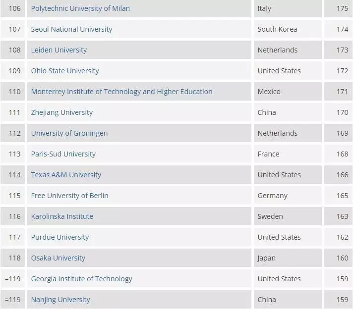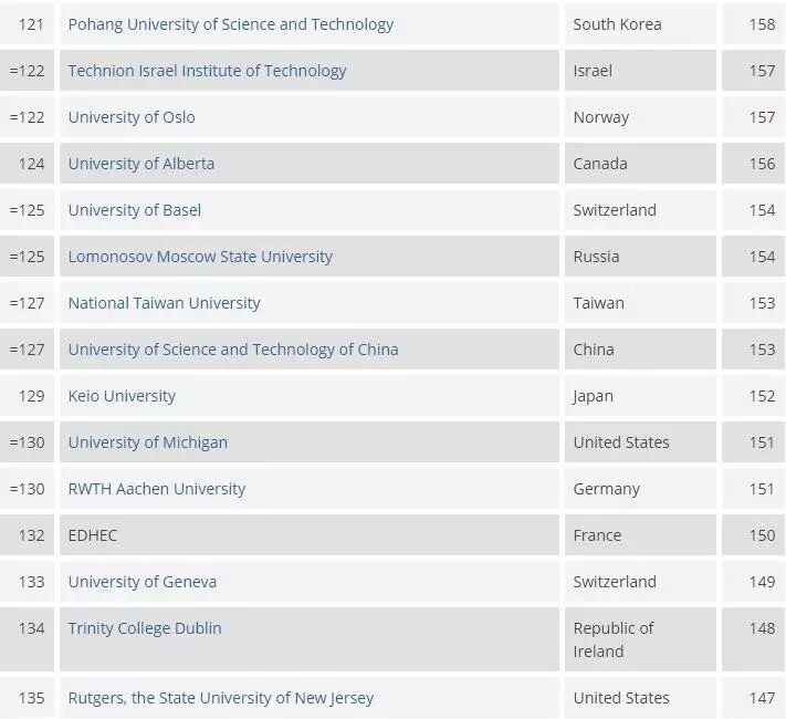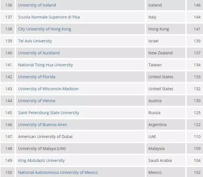 所以,啰嗦了这么多,主页菌终于要放排名了,THE只排出了全球150所大学,并标注“The 150 best universities for delivering work-ready graduates”。啥意思呢,就是说这150所大学培养的都是通过企业认证、质量过硬、毕业后随时可以工作的学生,听起来吊吊的样子。