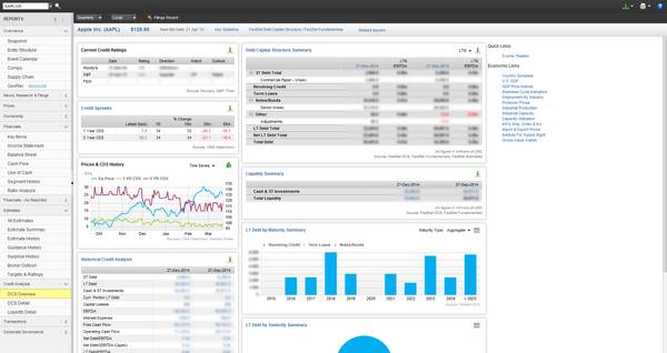 信用分析当然也是不可或缺的一项,同样作为开放平台,FactSet提供Moody's,S&P,Fitch等的评级,当然还有各类债务的分析。