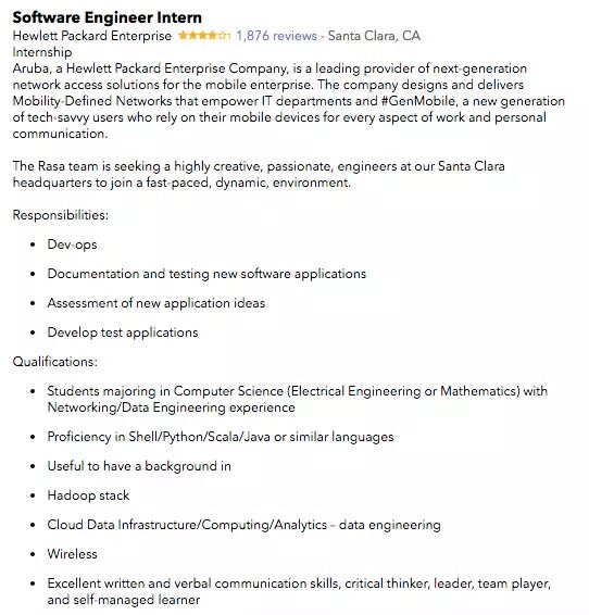 职位例子2: 此公司提供的软件工程Internship要求较为初步,较容易申请
