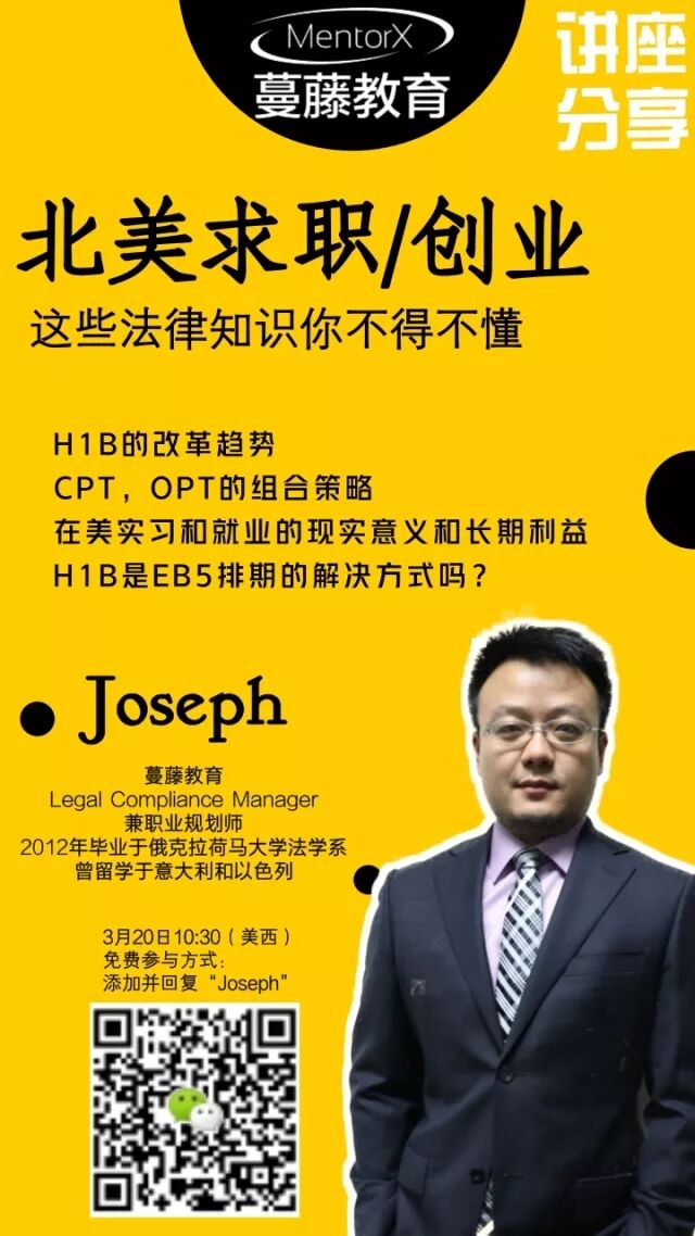 很多留学生求职难,找不到工作或是不适应职场的环境想选择去创业。我个人非常支持学生时代的创业精神,也认为创业是锻炼一个人非常难得的一门人生课程。但留学生在美国创业不好比在自己的国家。身份和法律有着诸多限制。和大家相比计较, 我更清楚了解的各类签证的不同,这一块鲜有人为他们进行笼统地介绍和科普,我非常愿意去分享我的知识给他们,也尽量让他们少走弯路。”