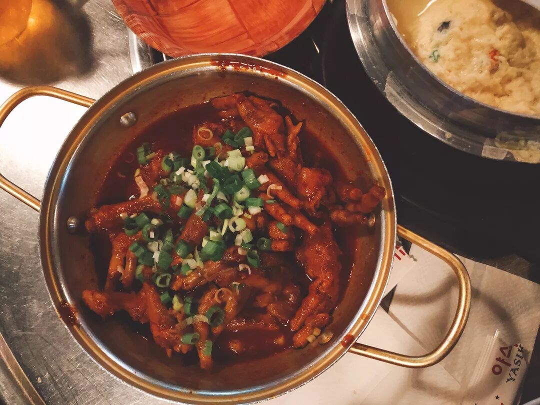 在博物馆消磨一天的时光,想必大家都累了,转过几个街角就是夜晚格外热闹的Ktown。这里有一家餐厅小编一定要推荐,那就是辣鸡爪超有名的Ya Sik Na Ra。辣度从0-7,一般人能挑战到3的就可以敬为一条汉子了,喜欢吃辣的小伙伴千万不要错过。另外,这家还有部队锅、海苔饭团、烤猪蹄、牡蛎汤等等等等值得尝试的,快自己来发现吧~