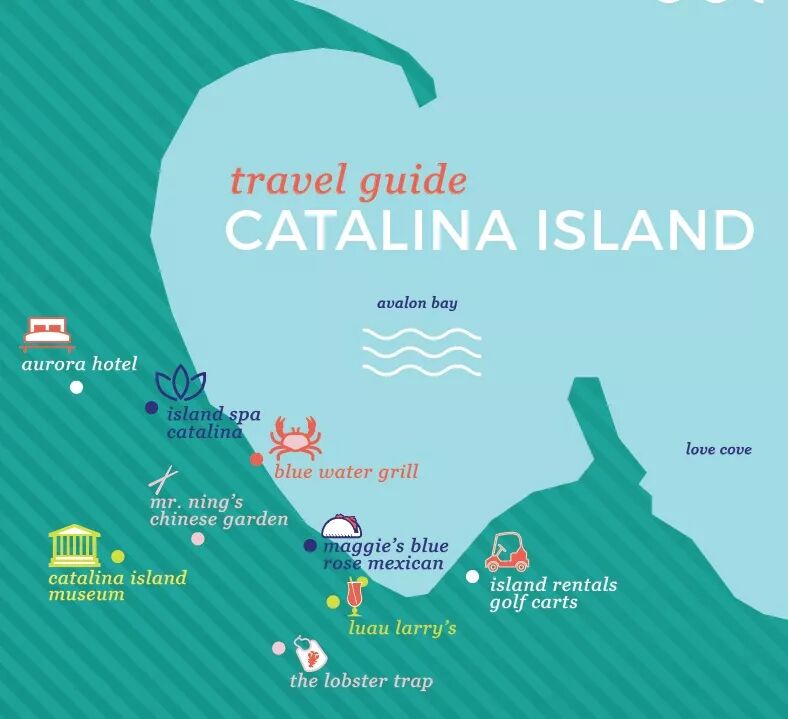 Catalina全称Santa Catalina Island,是加州八座Channel Island的其中一个,岛上民风非常质朴,并且还是加州唯一限制机动车大小和数量的地方,所以在当地会感受到与洛杉矶的繁华截然不同的轻松惬意。