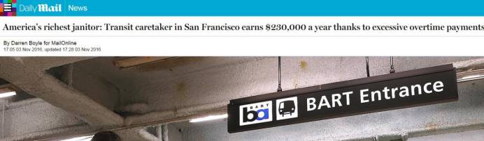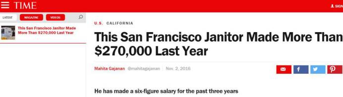 事情是这样,非营利组织“透明加州”(Transparent California)11月1日公布超过10万名加州政府雇员2015年的薪金资料。结果旧金山湾区地铁华裔清洁工2015年的薪金竟然高达271243美元!