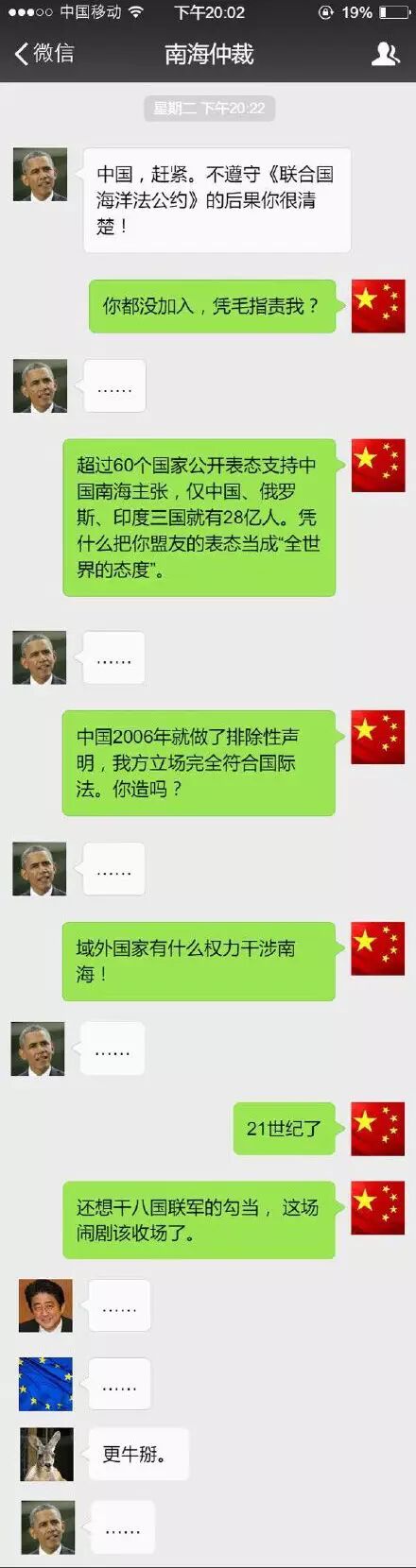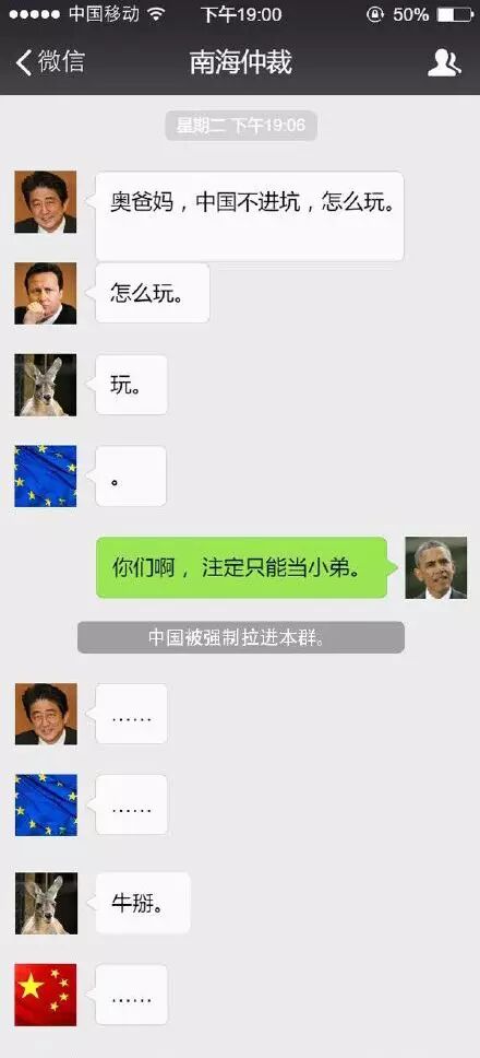 用一张时下最流行的微信聊天记录图来更形象地了解一下现在的局势: