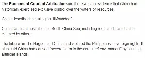 北京时间7月12日下午5点,南海仲裁结果正式公布,荷兰海牙法庭裁决,中国对南海海域没有“历史性所有权”。中方仍坚持“不接受、不参与、不承认、不执行”!