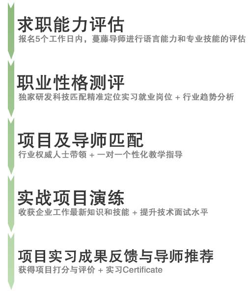 关注MentorX—学在蔓藤,赢在职场! 暑假放假做什么...想实习? 发现今年暑假的实习已没有了机会 安慰自己还有明年呢... 但是你知道美国大学三个月的假期 大部分美国同学都是怎么度过吗? 《福布斯杂志》本周刊登的一篇文章 3 Simple Ways To Make The Most Of Your College Summer Vacation 告诉大家? 越来越多的同学 正在选择这三种方式来充实自己的暑假 1、找一份暑假实习或工作 2、上暑假课程 3、开始你自己的商业项目 雇主最看重毕业生的地方是过去的实习经历, 与真正解决问题的能力 而不仅仅是成绩上的聪明 但是暑假已经开始 没有找到实习是不是已经没有希望了呢? 所以面对三个月的漫长假期 有没有既可以学东西又可以实践的机会, 让这个宝贵暑假不浪费? 让蔓藤导师暑假带你飞 30天帮助你专业与职场技能大飞跃! 这是一个怎么样项目? V.I.P 是Virtual Internship Program的缩写,旨在为还没有找到暑假实习的你提供一个与专业导师实战培训和学习提升的平台。VIP的项目由世界500强企业的培训为基础,针对留学生的特点以及面试时的考查重点,为中国学生量身打造的远程实习项目。项目结束后学生将得到导师提供的Reference List。 项目流程 项目内容介绍 项目涉及以下方向 一 商科- 金融类 二 商科- 市场类 三 商科- 商业分析类 四 商科- 人力资源 五 IT与电子工程类 六 机械工程类 七 生物工程类 八 环境科学 九 物流运输类 十 法律类 项目介绍 第一期:金融类项目主题? 1 Costco批发公司的估值项目(金融类) 2 摩根大通金融衍生品定价 并购(M&A)+杠杆收购(LBO) 3 特斯拉金融分析 4 高盛固定收益产品,估值与分析 5 美林证券组合管理 更多专业远程实习机会本周将于大家见面,敬请期待...... 项目亮点 1、为学员所匹配的职位,如数据分析师、科学家、金融分析师、软件开发员等职位提供进入就业市场所需的最有用的技能和直觉。 2、此项目的重点在于导师将帮助学员了解所教技能与知识再日常工作中的应用及重要事项。 3、通过项目实习学员将在实战中获得自我学习与提升的方法,以及面对分析任务时如何阅读和查找资源的能力。 4、该项目为学员模拟真实工作环境,并且在5-6个周内学会指定技能,并且了解技能在行业的最佳使用方式。 申请条件 Ø 专业要求:相关专业 Ø 年级要求:大一及以上 Ø GPA要求:3.0以上 第二期远程实习项目已开班,报名从速! 咨询及报名方式 关注蔓藤教育 并回复【 VIP 】 立刻查看项目咨询方式