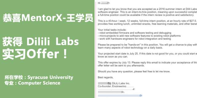 再三权衡后,王同学选择了加州一家机器人科技公司,无论在软件和硬件上都和他的个人能力非常匹配,而且公司致力于前沿的机器人方向的研发,前景非常好,于是决定接受这家企业的Offer,收获年薪$7万美元的薪资。