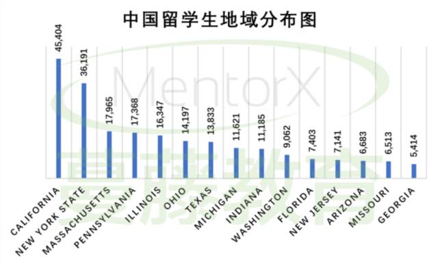 加州、纽约州最受中国留学生青睐,与当地的教育、经济形势密切相关。加州所在的西海岸经济发达,并且拥有加州大学系列以及斯坦福、南加大等世界一流大学。此外,加州还有举世闻名的高新科技公司发源地——“硅谷”,为国际学生提供了最佳创业和就业环境。以纽约州和马萨诸塞州为首的东海岸,在经济发展、文化底蕴和高校数量上都居于领先地位,因而也是国际学生愿意就读的地区。