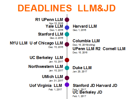 All application materials for the CAS Report, including supporting documents, transcripts, and letters of recommendation, must be postmarked to LSAC by December 15, 2016. Applicants who are required to submit a TOEFL score (see TOEFL Scores, below, for more information) must take the test no later than December 15, 2016 in order to be considered for admission for the 2017-2018 LL.M.