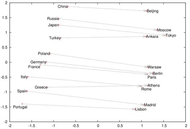 例如,上面提到的Google算法发现某些名词是单数/复数或具有性别之分(Mikolov 2013abc):