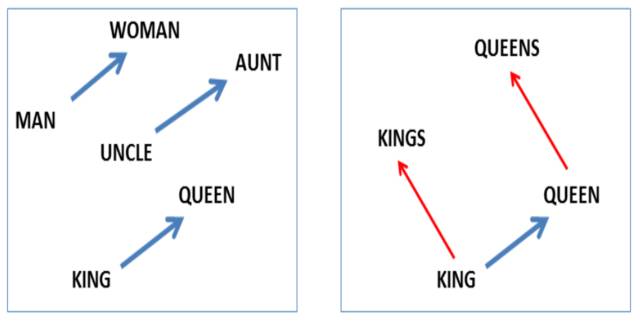 其中著名的一项突破是,2013年Google研究人员(Mikolov 2013)发现了一种方法使计算机能够学习如下语句之间的关系: