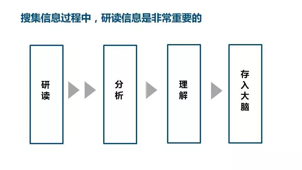 通过研读信息,你的阅读速度会得到提升,与此同时,搜集信息的工作也会变得更高效。随着对信息的研读、分析、理解,你可以对接下来应该搜索哪些资料更加明了。