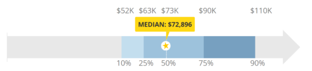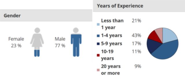 根据PayScale的数据显示,化学工程师的年薪在$51,005 - $120,085之间,平均薪资为$72,896。其中有77%的工程师均为男性。