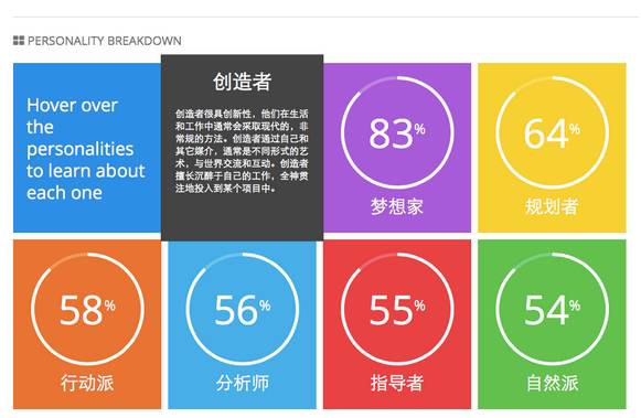 之前蔓藤有给大家隆重的介绍过咱们的神器之一, 职业测试! 小伙伴们的反响也特别好。 新来的小伙伴们可能还不是很清楚咱们的职业测试是什么。没关系,今天小编将会带着大家一起详细的看看这款神器! 首先,针对人群: 几乎所有人!尤其是对今后想要从事职业还很迷茫的人,或者是想要对自己性格与职业有进一步了解的人。 老规矩,今天还是由小编带着大家尝试一遍,相信我,做完之后你就知道为什么小编强烈推荐了! 首先界面就能让我愿意做下去,操作也很顺手很简单,只要根据自己的兴趣选择“ME”或者“Not Me”就行了。 界面小编当仁不让的要给满分了,但是一款性格职业测试当然不能只是界面好看。 小编作为一个效率至上的人,习惯性的在做题开始是掏出了计时器。 差不多十分钟。时间方面也是没得说。满分 可能有的人会质疑,“十分钟能测出什么嘛,不信不信”,当然小看它就是你的不对啦。 为了证实咱们产品的可信度,小编特意咨询了蔓藤的技术大大,你看看人家技术大大们怎么解释的: “这款职业测试我们别出心裁地使用了图片方式是有原因的。要知道咱们人类都是视觉动物,这也是为什么很多人比起文字更倾向于图片。这个测试里的所有图片都是由心理学家根据大数据的统计挑选出来的,包含了一个人丰富的性格元素和心理特征。 不仅如此,图片还能大大压缩了大家的读题时间,减少大家的时间花费,同时图片能够最直观的测试一个人的潜意识反应。也就是说这个个性测试其实是一个直觉测试。图片的信息含量比一句话多得多,背后隐含的内容也更能体现测试者的性格和心理特征。 大家看到图片时不要过多的考虑“这样的个性对我有好处”,而是“我就是这样个性的人”(就是这么任性!)。这样也能使结果更加的贴合自己的真实状态” 依旧是蔓藤的风格,界面很漂亮。 但是人的性格怎么会只有简单的两类呢?让我们继续往下拉, 比起简单的把你归为一类,蔓藤选择了用百分比来呈现一个人的性格特征。没有黑点,继续满分。而且如果你对某一类不是很了解的时候,只要把鼠标放在上面就行了,比如像下面这样。 如果你真的是个性格特征重度粉的话下方还有更多的补充。 评语一栏小编再次被惊艳了一下。作为曾经学心理学的其实对性格测试是有点排斥的,但是蔓藤这个竟然指出了我一直没有意识到的缺点。小编原来团队协作时常会有一些无力感,可能因为梦想家太多行动派太少,每次头脑风暴都有种群魔乱舞的感觉,到最后也因为意见太多迟迟无法定下一个方案。这么准的玩意一定是黑科技。。。 接下来就是大家都很感兴趣的career match了: 小编数了数一共推荐了24个。选择性非常多。当然匹配度最高的未必就是你想要的。但是这24款总有一个适合你。即使你真的是个无敌的挑剔宝宝,我想做到现在你肯定也大概有一些想法了! 很多时候职业测试最烦的是信息的不完整。他们都只是单单给你职业的名字,你还需要额外的时间去搜索这个职业的相关。但是蔓藤这里只需要一个轻点这个职业就行了。信息也是特别完全,薪水,前景,学历,专业什么的一目了然。作为一个效率至上的人真的觉得蔓藤很贴心。 大家想必看完之后有点蠢蠢欲动了吧。 让小编告诉你怎样找到这个神器! 点击“阅读原文”或从电脑端登录 mentorx.net/CareerAssessment 注册获得你自己的账号后就可以使用职业测评了 此测评的费用是99刀 点开第二个”Career Assessment” 就可以开始测试啦~ 是不是很方便呢~ 心动不如行动,赶快动起来吧! 【本期福利】 上个月我们在文章给大家带来了福利? 小编跟职业测评版权所有者蔓藤教育要到了 10个幸运名额 如果小伙伴们把这条微信转到自己的朋友圈并截图发给客服小助手 就有机会免费使用价值99美金的职业测评! 今天我们的10位幸运观众名单出炉啦! 有哪些幸运抽中的小伙伴 获得了免费使用职业测评的机会呢? Wei 常晓绯 开车一小时 鑫Sean AAAAA Wenjun Gao 萌妹纸爱夏天 La Seine Jane Q 花儿 请以上十位幸运小伙伴在后台回复小编 即可开始职业测评了呦!