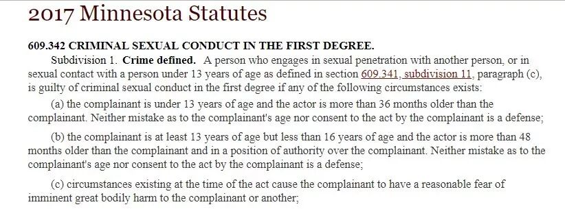 众所周知,美国奉行联邦和州两套法律体系,这是美国建国的基础,然而州与州之间的法律也不尽相同,在某州是轻罪的案件在其他州可能就是重罪。该案发生在明尼苏达州,刘强东根据明尼苏达州的刑法被逮捕,本案适用的是明尼苏达州的法律及程序。根据明尼苏达警察局的公开信息可见,刘强东在2018年9月1日被警方以刑法第609.342S1(C)的一级刑事强奸罪逮捕。