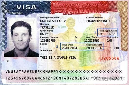 B 类签证为前往美国的普通商务和旅行签证。您的签证类别显示在签证右上角。