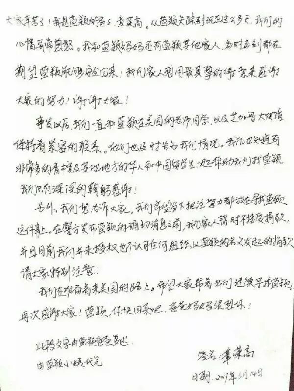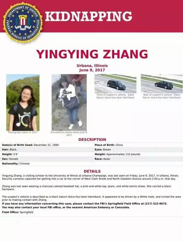 关注MentorX—学在蔓藤,赢在职场! WE NEED YOUR HELP 小编这几日一直在持续关注莹颖的事件,也早就在白宫的请愿网填了自己的信息。我们还需要将近6万个签名才可以完成请愿!需要大家的帮助!呼吁大家团结进来!(文末点击“阅读原文”就可以Sign This Petition!) ▲“白宫请愿网”截图。图片来自网络 在美交流的北大毕业硕士生章莹颖,已失踪6天了,至今下落不明。 “紧急寻人!中大/北大校友章莹颖,在美交流失踪”,12日,这样一则寻人启事在网上被一遍一遍转发。被寻找的主人公名叫章莹颖,今年26岁,2013年在中山大学完成本科学习,2016年在北京大学拿到硕士学位毕业,之后两年一直在中国科学院客座学习。今年4月,她前往美国伊利诺伊大学厄巴纳-香槟分校交流学习。然而,当地时间6月9日下午开始,她便在签租房合同半途中失踪,截至发稿仍未找到,目前已失踪百余小时。 (在美失踪多日的章莹颖。) 失联时间线 6月8日 章莹颖与当地租房机构One North约好,9日下午1点半签租房合同。 6月9日 下午1时章莹颖离开学校办公室,1点半,她短信通知对方将签约推迟至下午2时10分。 6月9日 下午2时30分,芝加哥警方事后发现了章莹颖手机可查寻的最后一个通话记录,通话地址在下午2时30分在芝加哥一个长途汽车站。 6月9日 下午2时38分钟,当地租房机构One North的工作人员章莹颖联系时,已没有回复。 6月13日 香槟警方最近的facebook 6月14日 芝加哥警方将章失踪案列为最重要的案件:驻芝加哥总领馆余鹏副总领事与侨务组、教育组工作人员已经一起前往伊利诺伊大学香槟分校(UIUC)。 美国联邦调查局FBI也于今日宣布,正式将其失踪事件定性为绑架案。 来源:网络 6月15日 莹颖的父母发声,目前不接受也未授权任何捐款 6月16日 一、全美寻找章莹颖倡议书已发布并置顶。 二、FBI暂时未公布更多案件进展情况。 三、莹颖家人已顺利拿到赴美签证,预计将于美国当地周五(6月16日)或周六到达芝加哥机场,由芝加哥领事馆直接接送至UIUC。 监控视频: 据中国驻芝加哥总领馆的信息称,章莹颖家人将于周六上午飞抵芝加哥。UIUC校方已安排特别工作组负责章莹颖家人的来访和接待,章莹颖家人抵达机场后由芝加哥领馆直接接送至UIUC。 “FBI呼吁:继续提供与车辆及失联女生线索” FBI呼吁大家,继续提供与车辆以及失联女生的相关线索! 章莹颖,27岁,福建人。身高158cm,体重50kg,及颈中短发,微卷,咖啡色,戴圆眼镜。椭圆脸蛋,双眼皮。 若任何人有任何有关本案的信息: 负责警官 Sergeant Bradley 电话: 217-333-1216 FBI斯普林菲尔德(伊利诺伊州首府)当地办公室:(217)522-9675 国内联系人: 赵女士 18201544013 吴女士 18001376867 美国联系人: 管先生609-647-1368 李先生301-256-6247 多一份传播,多一份希望!我们与时间赛跑,盼莹颖平安归来! 其实,并不是莹颖的这一件事件值得关注。实际上,类似的事件也曾发生过或者正在发生。 世界说@飘怡 我曾在学校里亲身经历校园袭击案。 那是早上10点,我在上一堂法语课,突然手机里跳出学校安全警报:“校园内有活跃枪手,跑、隐蔽、反击。”看着这则警报,我有点反应不过来,在我过去19年的人生中,这种只在新闻或电影中看过的事件,竟然真正发生在离我几分钟路程的大楼旁。 教授立刻停止上课,与系主任通话后,将全班学生都带到办公室。那里已经聚集一些别班的学生与教授。锁好门之后,大家都坐在了地板上。因为都是学法语的学生,耳边围绕着法国新闻电台的报道,我们教授却开始讲起新闻里的文法,试图活跃紧张的气氛。不安与恐惧来源于不可知,对于事态的了解与集体归属感的存在令我感到放心。 我不知道远在国内的父母,打开新闻却看到我的学校发生危险事件时,该是怎样的心惊胆战。我给家人留言,第一句便是“学校发生一件事,但首先,我向你们保证,我很安全,我没事。”然后向他们解释整起事件。父母嘱咐我,与集体呆在一起,听从指挥。 将近两小时后,枪手被击毙,警报解除。当我走出教学楼,马路、草坪上全是缓缓走过的学生,阳光照下来,我眯起眼睛,竟有种劫后余生的感觉。我默默想到,“好饿,赶快回家煮顿寿喜烧。” “出门小心,走路不要总盯着手机看。”“晚上早点回去,路上多留意下四周,注意安全。”我在美国的每一天,爸爸的叮嘱都是一天的开篇与落幕。 知乎@帅姐姐就是原老师 有几次坐错公交到城郊,夜闯兄弟会爆炸着火,看午夜场电影被打劫,独自回家被跟踪的时候都被好心人捡起,有惊无险。 世界说@Joyce 很多起安全事件让我感到自己身边危机四伏。在去美国之前南加大有两位留学生遇害,那时候我以为这只是一个孤立的事件。但大一时发生了波士顿马拉松爆炸案,大三在荷兰交换的时候德国也出现了难民性侵女性的案件,之后还有布鲁塞尔恐怖袭击。每一次大规模安全问题爆发的时候,自己都在不远的地方,家长自然很担心。一贯不太过问我去哪里旅游的父母都开始要求我每天必须用语音随便说几句话报平安。 我所在学校的附近,是一个“治安良好”区域,但是平均一个月还是会收到几封来自学校的邮件,内容多是学生报案学校附近有人骚扰女生,呼吁大家结伴出行,不要在天黑以后在外面独自逗留。 知乎@桃花沽酒 在Illinois的芝加哥市读硕士两年,工作一年。这期间一共被抢劫三次,其中一次持刀抢劫,一次持枪抢劫。说说我的经历,因为刚刚入学的时候
