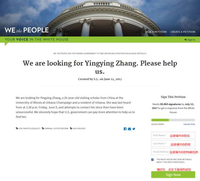 请愿 | 章莹颖失踪数日!白宫需要听到我们中国人的声音!