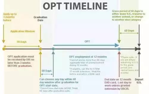 以南加州大学为例(如下图所示),在一个学生毕业前90天内即可去申请OPT,但是必须在毕业前3周确保OIS(Office of International Office国际学生办公室)收到申请。而OPT开始的时间一般是在毕业后60天内。但是,请注意,对于同一个学生来说,每个Degree Level(学位等级)只有一次OPT的机会,换句话说,如果你在美国先读了一个Master,然后申请了OPT,那么在OPT结束后你又读了一个Master那么你就不能再申请OPT了。而如果这个时候你选择是继续读PhD,那么在PhD结束后你还可以继续申请OPT。
