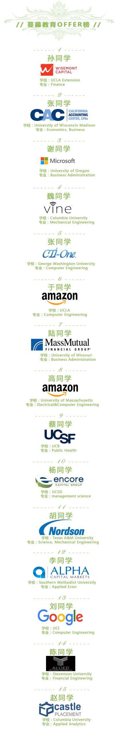 五月刚开始就下起了Offer雨,蔓藤学员上周15个Offer上榜!