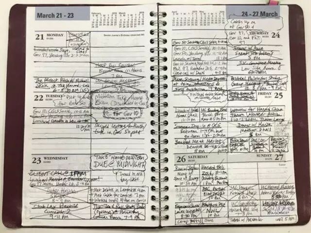 其实,我的计划中并没有拿出多少的时间是在课堂上度过的,而是被丰富的校内活动排满。我并没有安排具体哪一个时间段来学习,我会习惯在日历上写下,而对于没有安排的地方,我会用来学习,看电子邮件或者为之后有安排的做提前的准备,当然,这包括一些会议等.......