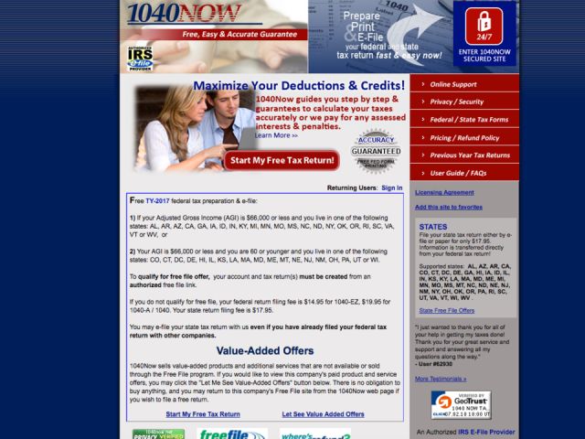 它也不会试图迫使你升级一些其他网站。任何有资格获得所得Income Tax Credit人都可以获得免费的Federal Return。