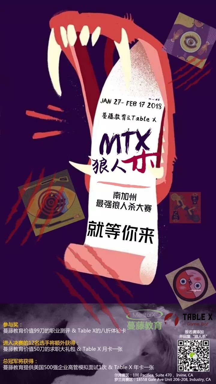 回复“MTX”或“狼人杀”了解参与方式