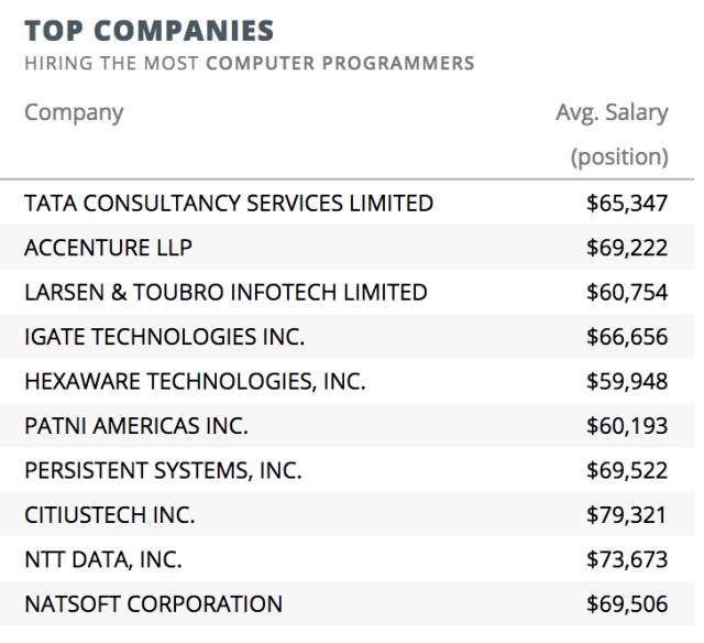就在昨天4月3日美国的小伙伴终于完成了H-1B工作申请材料的提交 大家总算舒了一口气 想着可以安心等待结果了 可是移民局今日却突然爆出新闻 USCIS已在周末安静地发布了新的政策意见—— Computer Programmer(计算机程序员) 不再被认为符合H-1B签证的资格 What?Are you kidding me? 相信很多小伙伴和小编一样瞬间陷入了混乱和不解 如果你是常用蔓藤教育职场引擎的小伙伴 你会发现这个工作是每年申请H1B第四多的岗位 每年有上千的申请者通过在这个岗位上拿到了工作签证 如果今年移民局不再接受Computer Programmer的职位 那意味着许多小伙伴的申请会被拒绝 这个岗位都集中在哪些城市?又有哪些公司在招聘呢? 小编好奇地在我们的职场引擎上搜索了一下: 亚特兰大、休斯顿和纽约是招聘Computer Programmer最多的城市 Tata Consulting, Accenture, 和Larsen & Toubro Infotech是招聘这个岗位最多的公司 咦等一下... Tata Consulting不是印度的外包公司吗? 这..移民局到底有何意图? 而它的消失又意味着什么? 不要担心, 小编快速找来了USCIS的官方信息 来给还在疑惑中的小伙伴做一下解答 4月3日,周一,美国2018财年H-1B 正式开始接受申请材料。同一天,移民局发布通知:《美国员工优先:USCIS宣布将进一步严厉打击H1B签证欺诈及滥用》。 通知称从今天起,将对全国范围内申请H-1B的公司和申请者的工作地点开展更有针对性的实地突击查访(site visits),侧重在以下范围: 1、 移民局通过公开数据无法核实其经营信息的雇主; 2、 H-1B依赖型雇主(H-1B员工比例高于美国员工); 3、 雇主为在其他公司或机构地点工作的员工申请H1B。 那么该如何解读呢? 移民局此举动其实是想阻止滥用H-1B签证计划,从而降低因为进口更多的外籍员工而对美国员工在收入和就业机会的影响。 今年早些,移民局就已经宣布暂停所有 H-1B申请的加急处理,今天在开始递交申请的第一天发布此项通知,很明显是特朗普移民政策的又一措施。这一措施开始实行,对于广大 ICC 公司是一种严厉打击,同时,也意味着所有的 H-1B申请人都将会面临更为严格的审查制度。 总之今年已经递交申请的小伙伴,请不要过度担心或恐慌,美国移民局一系列的举动说明今年H-1B申请将会经历更严格的审查制度。很多使用不正当手段申请的外包公司正在经历着检验和考核。 这对我们中国的留学生的申请未必是一件坏事,希望我们所有参加抽签的小伙伴们都有好运气!