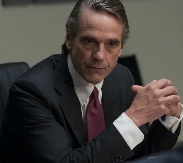 对于经常需要加班的初哥来说,早上多睡五分钟的诱惑可是极大的。此外,还有另一个好处有没有:就算不换衬衣也不太容易被发现。 忙季连把衬衣送到楼下韩国大妈那里干洗都没有空的初哥,衬衫的“可循环使用”可都是经历过的,环保嘛~至于何时升级自己的衬衣,纯看个人追求了,不讲究的做到CEO都可以一打白衬衫走天下(如下图中Jeremy Irons所扮演首席执行官John Tuld,白色button down的衬衫都拿来配正装,仔细一看袖口压根就没有开扣眼!他身体力行地在告诉观众,我是CEO我怕谁,我赤膊出来都可以。),而遇到讲究的愿意修炼的就可以慢慢随着自己位置的晋升而更新换代,有钱把玩不同款式,也有闲伺候不同面料。