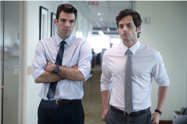 作为刚进入职场的新人,其实Peter Sullivan (Zachary Quinto所饰)和Seth Bregman (Penn Badgley所饰)这两位小哥已经是做的挺不错的了,但是还是有很多初哥印记。
